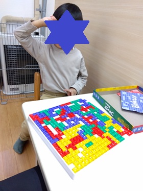 この写真は、ゲーム終了後に「余っているピースで盤を埋めたい!」との希望でチャレンジした時の写真です☺