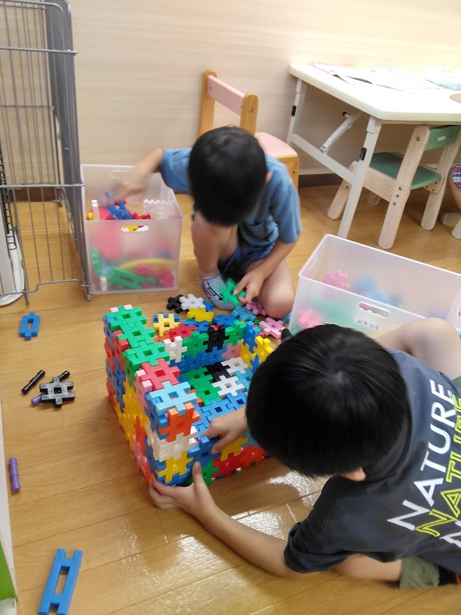 お子さんも職員も熱中してしまい、「まって!もうちょっと考えて良い?お願い!」とお互いにお願いし合いながら遊んでいます☺