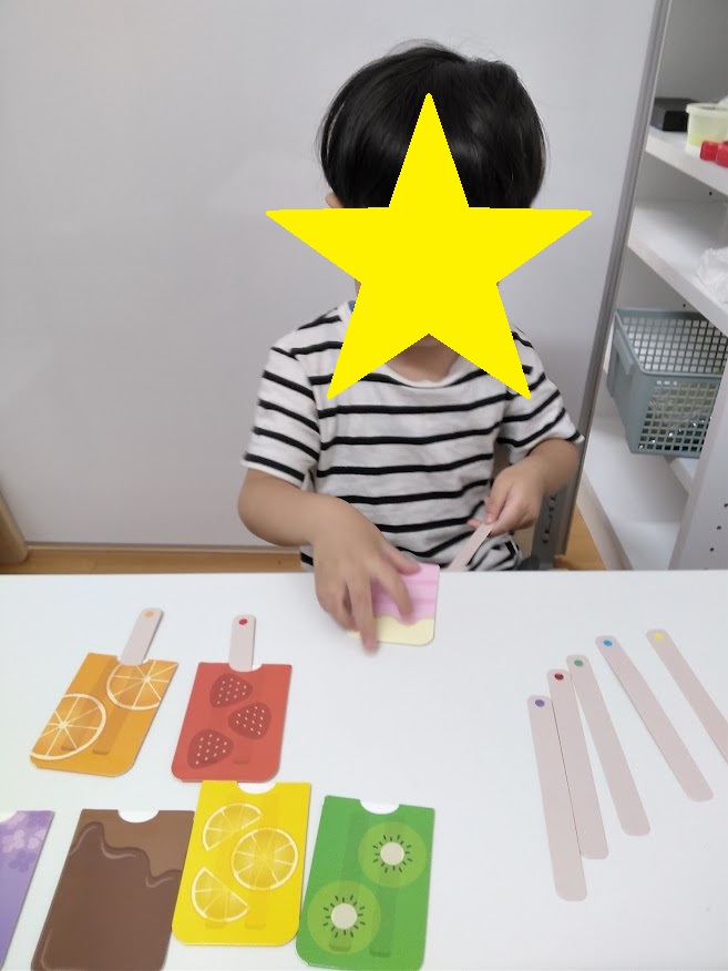 こちらはアイスマッチングというお子さんがアイス屋さんになりながら楽しんで取り組んでもらえる課題となっています😆