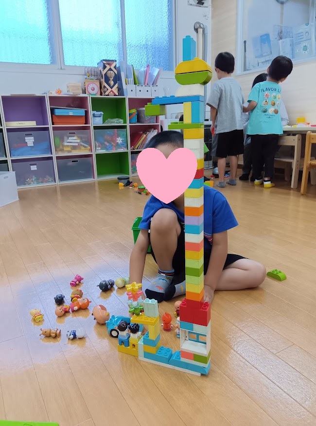 黙々と高く積み上げている様子を見た職員が「何作ってるの?」と尋ねると「高いお家だよ!」と教えてくれました🤓