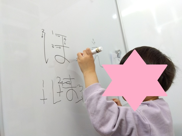 先生役になったお子さんは「あ~!惜しい!本当はこっちを書いてからこっちなんだよね~」と楽しんで取り組んでいました!