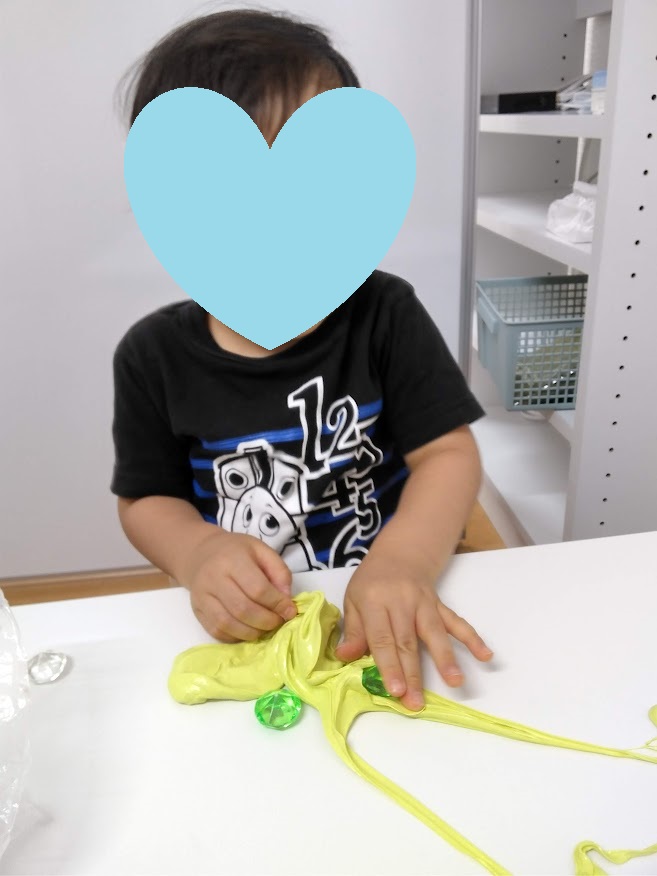 療育の仕方は粘土の中にクリスタルを隠して指先を使いながら探す