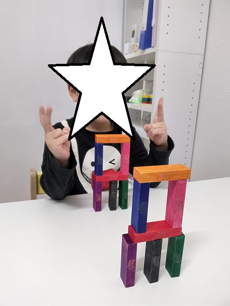 こちらはジェンガを使い【巧緻性】や【集中力】の向上を目的に取り組んでいます。